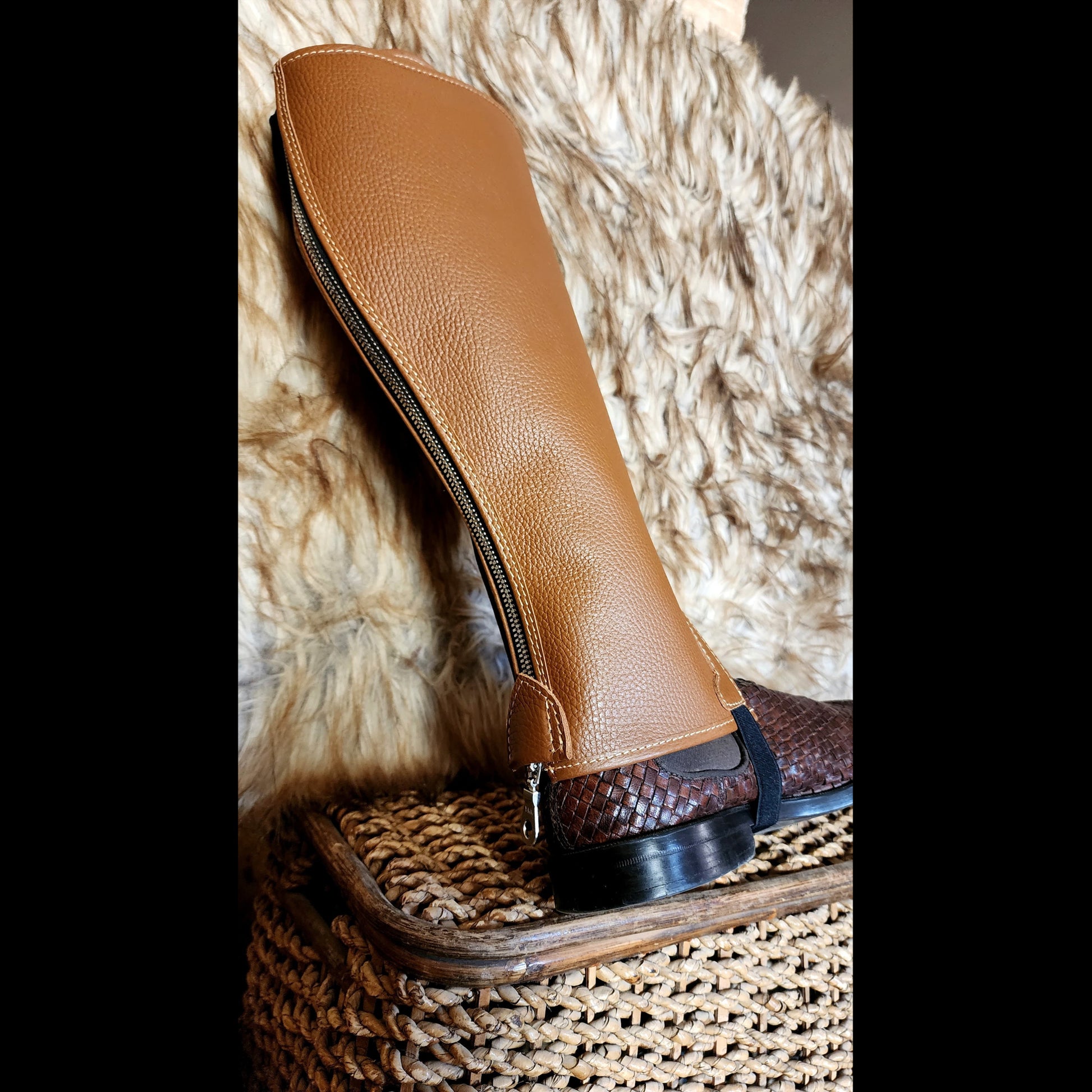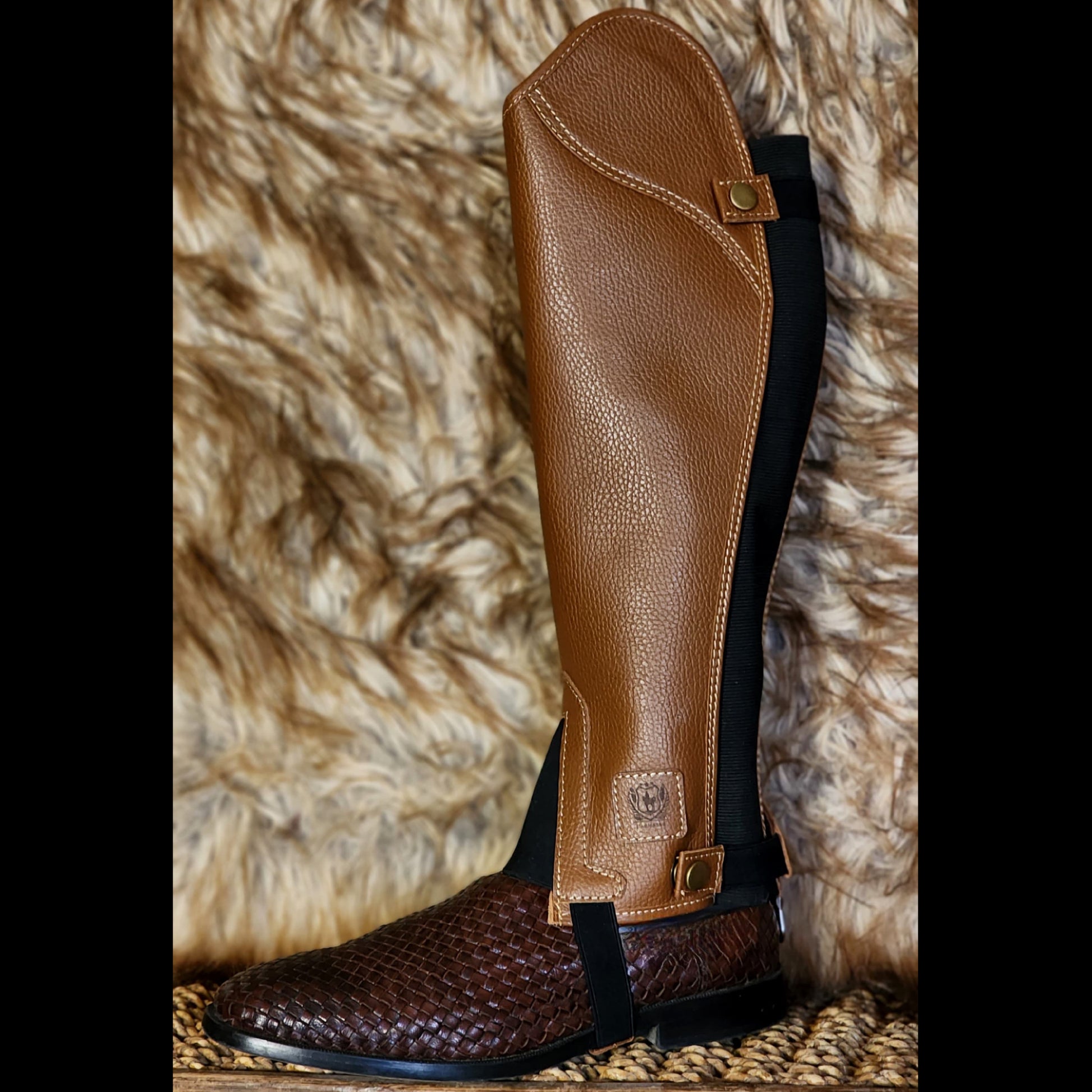 These equestrian half chaps are meticulously crafted from premium Italian natural leather, ensuring durability, flexibility, and a luxurious feel. Each pair is meticulously handcrafted using traditional sewing techniques, ensuring attention to detail and superior quality.